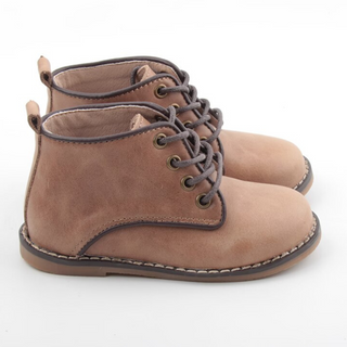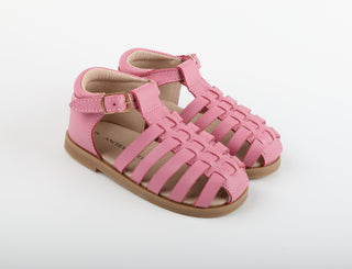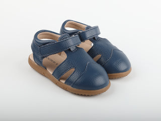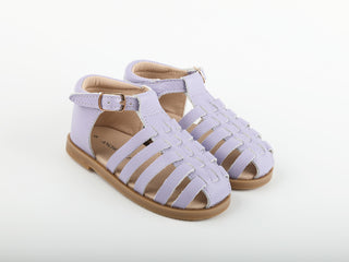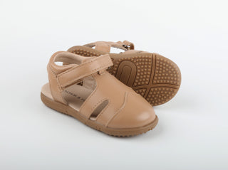 Leather, with padded heel. Velcro fastening for the easiest shoes to put on!